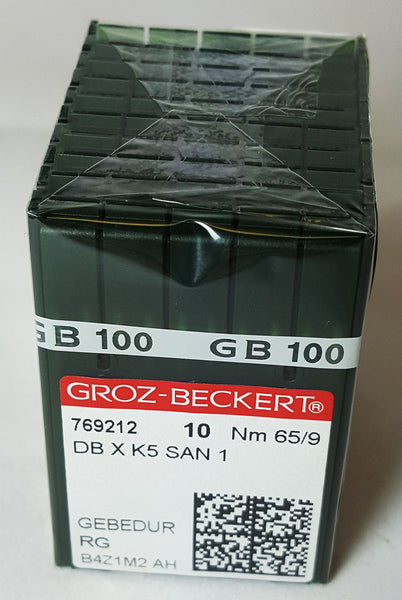 Groz-Beckert 65/9 Sharp Point Titanium Coated Needle. For use on Woven (stable) Fabrics, including; Caps, Light Leather, Broadcloth, Poplin, Denim, Bags and Insulated Items. Box of 100